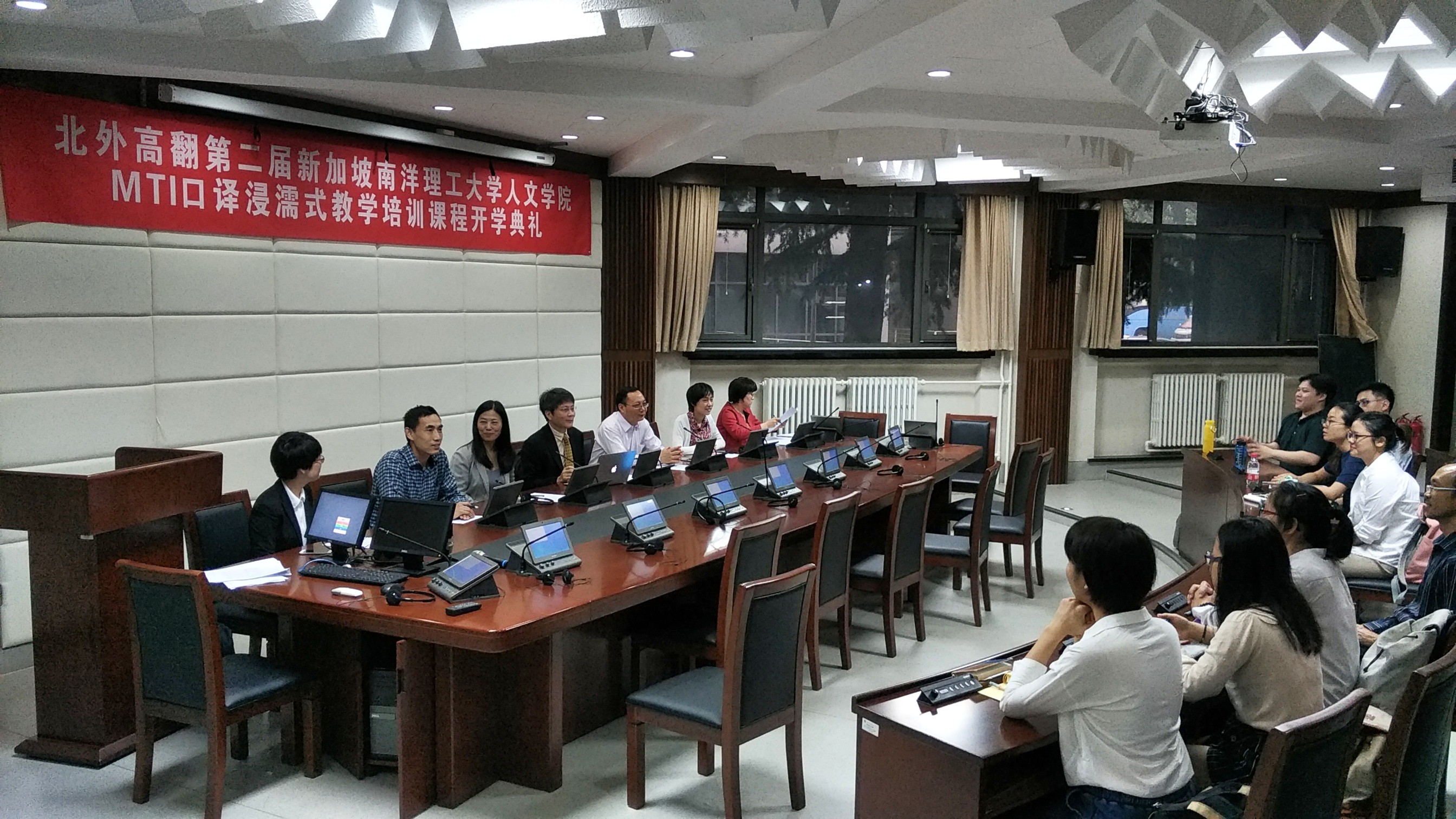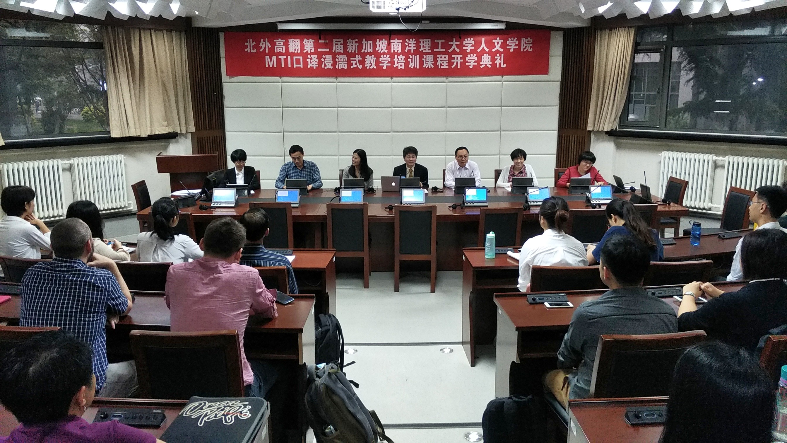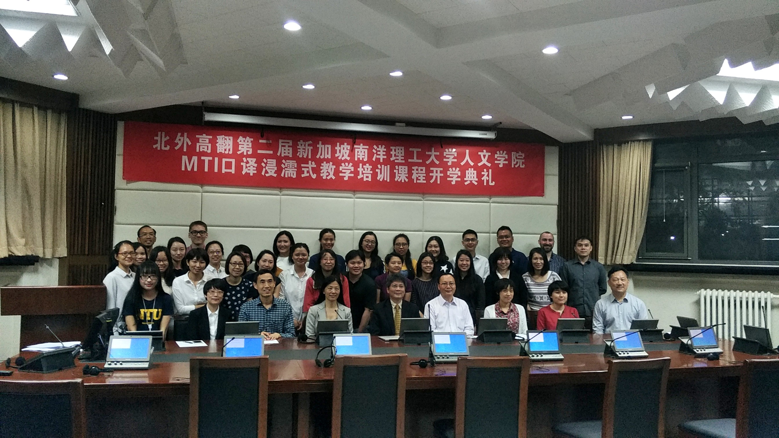 2017年5月22日,北外高翻第二届新加坡南洋理工大学人文学院MTI口译浸濡式教学培训课程正式开课。开课前,举办了隆重的开学典礼,新加坡南洋理工大学人文学院院长陆镜光、高虹博士和卞蕾老师;北京外国语大学国产精品久久久胡晓莉书记、李长栓和姚斌副院长参加了开学典礼。