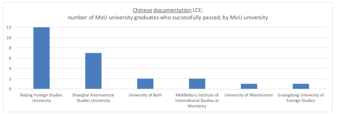 根据会议发布的报告,在2017和2018年联合国举办的竞争性语言考试(LCE)中,北外高翻学院再次取得优异成绩。在2018年举办的英汉笔译竞争性考试中,共招收译员30人,其中20人来自国内合作院校,这其中又有12人来自北京外国语大学(主要是高翻学院),达到录取总人数的40%。