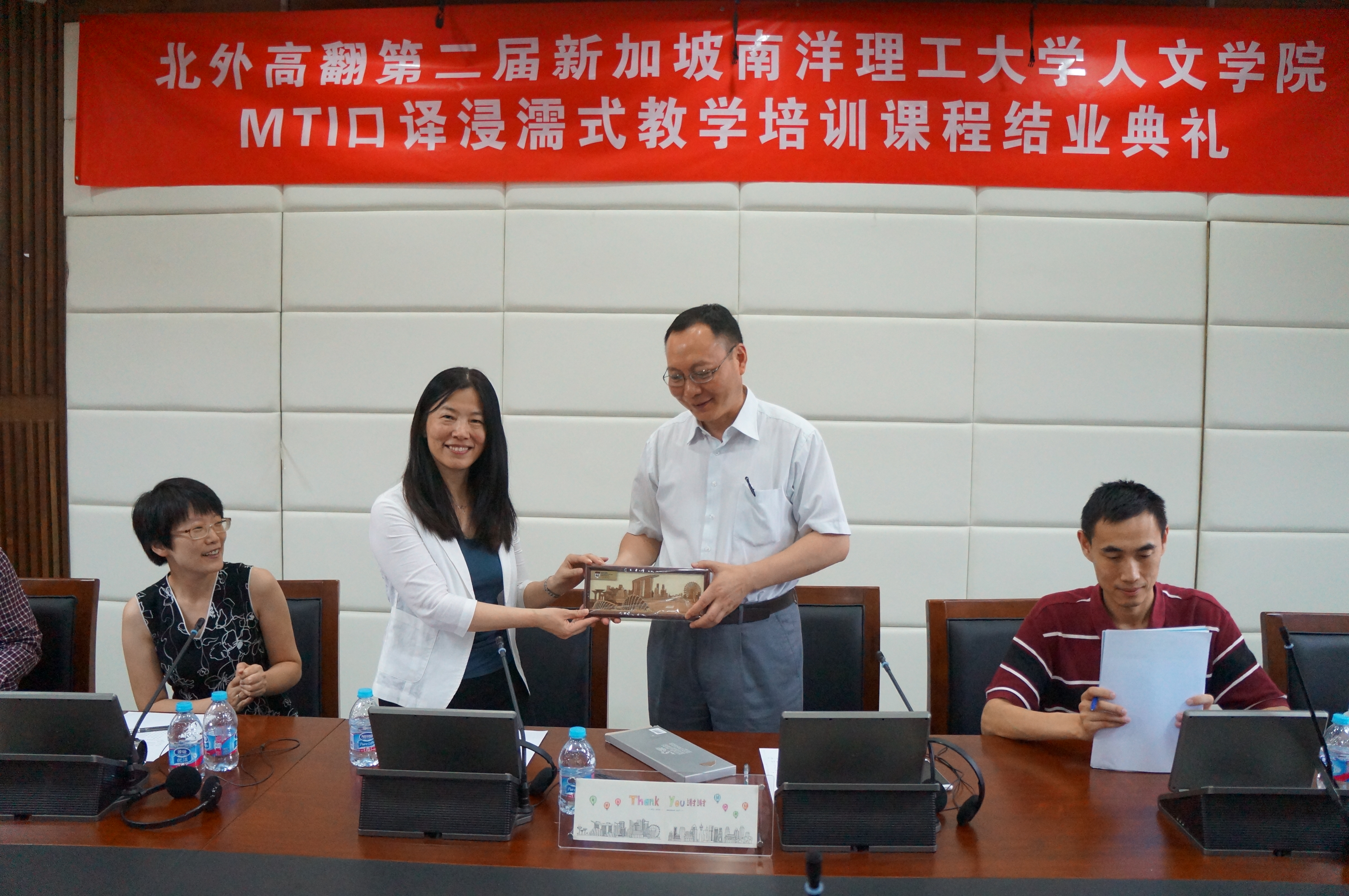参加结业典礼的有新加坡南洋理工大学人文学院的高虹博士和卞蕾老师;北京外国语大学国产精品久久久副院长李长栓、姚斌和胡晓虹、李天竹、姜业宏老师;还有参加培训的新加坡南洋理工大学人文学院翻译硕士专业的31名在校生。