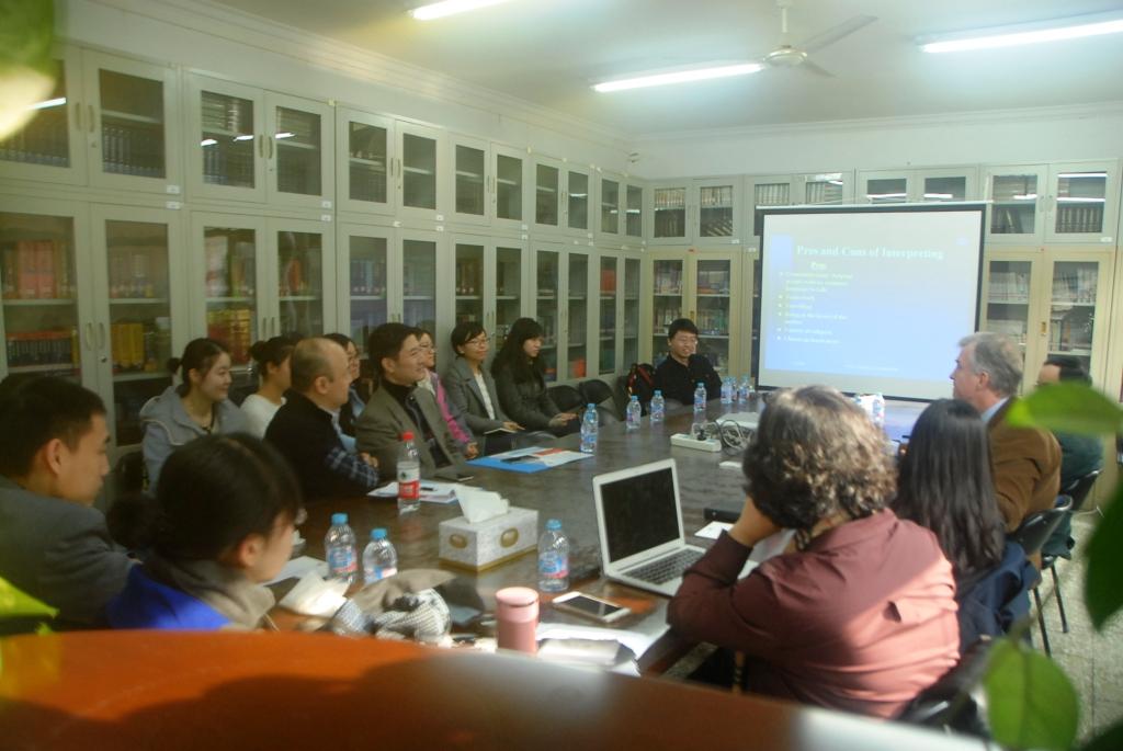 2016年11月4号上午,欧盟口译总司(DG SCIC)中国项目负责人Paul Brennan先生到访高翻学院。就口译培训、译员素养等话题,与高翻、英院、欧院等各学院的师生进行了亲切交流。高翻学院副院长姚斌主持了此次交流会。