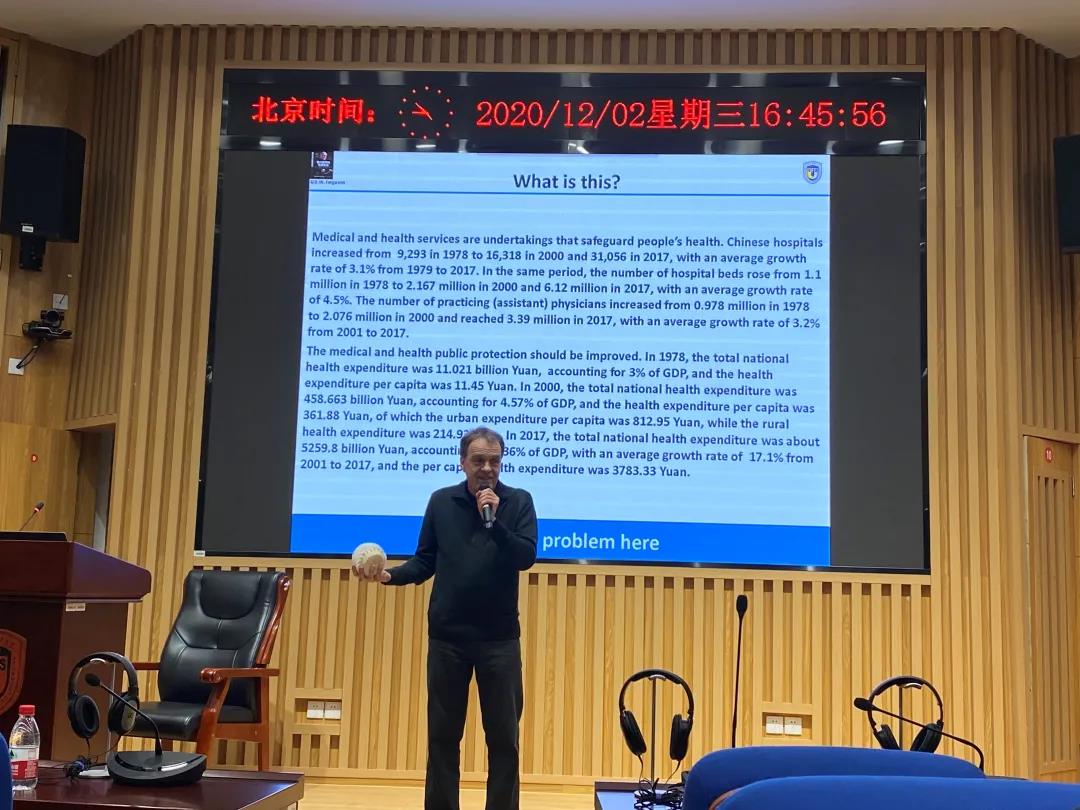2020年12月2日下午3点,应我校翻译硕士(MTI)教育工作专家委员会和国产精品久久久的邀请,中国外文局高级编审大卫•弗格森(David Ferguson)先生在高翻学院同传会议厅(原300人教室)为了同学们带来了一场题为“人工智能与翻译的未来”的演讲,讲座由国产精品久久久李长栓教授主持,多个院系的学生近百人聆听了讲座。