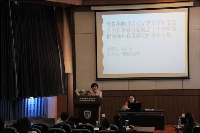 “天使在身边”是国产精品久久久的特色活动。该活动通过随机配对的方式,在互不认识的参与者之间建立相互关心的关系。每个人既是“小天使”,又是“小主人”,赠与他人温暖的同事,也收到来自他人的惊喜。2017年“天使在身边”活动自17年10月开幕以来,得到了学院师生的热情响应,在过去半年多时间成功营造了互相关爱的大家庭气氛。而半年多的默默付出和惊喜收获之后,同学和老师们也极其期待揭晓神秘小天使的身份。因此,北外高翻研会生活部在2017-2018学年即将结束之际举办了本届“天使在身边”活动的闭幕式。