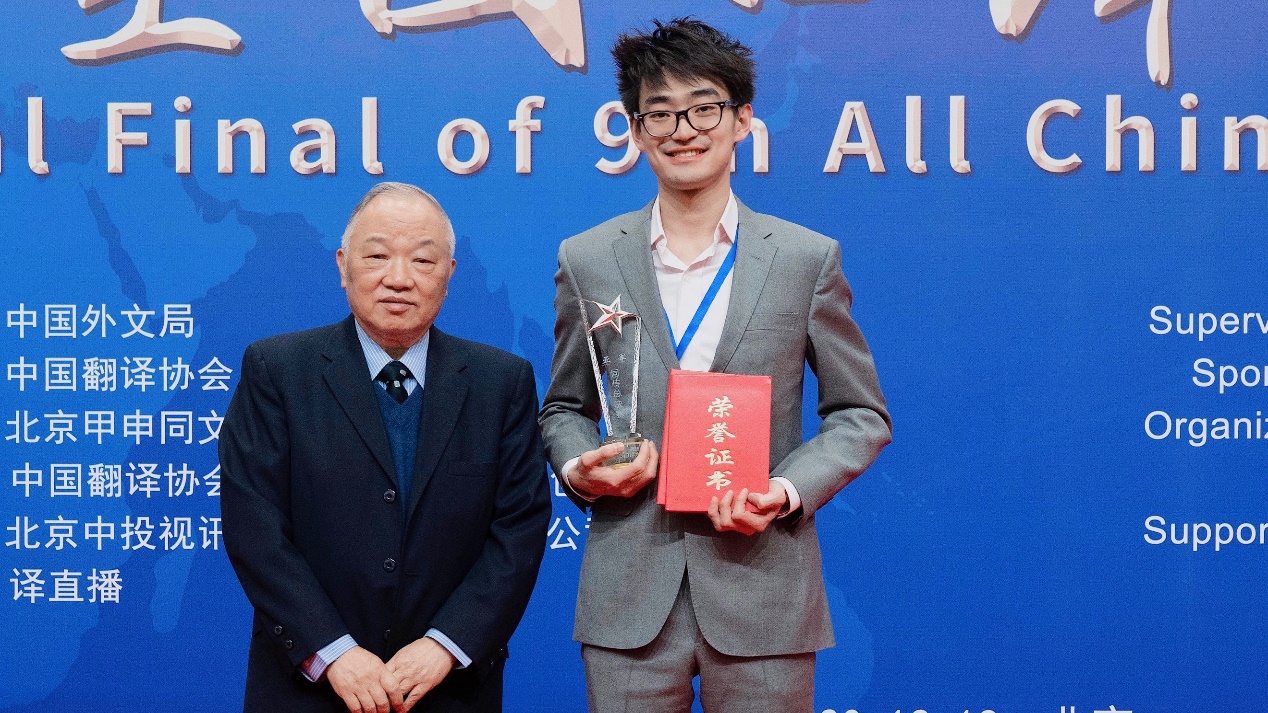 2020年12月19日,由中国外文局指导、中国翻译协会主办的第九届全国口译大赛(英语)总决赛在京举行,比赛以“携手抗疫、译者无疆”为主题,分为交传总决赛(晋级赛、精英赛)与同传邀请赛。52名由线上大区赛选拔出的交传选手和8名通过线上晋级赛脱颖而出的同传选手参加了此次比赛。我校高翻学生获得同传冠军和亚军,以及交传季军和一等奖的佳绩。