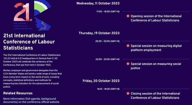 国际劳工统计大会每五年举办一次,是关于数据收集和劳工统计的重要性国际论坛。第21届大会不仅是劳工统计大会百年庆典,也是疫情后首次举办的国际性统计大会。会议期间,全会与委员会同步进行。全会就工作收入、工作中的暴力和骚扰、国际劳动力迁移、童工、强迫劳动、数据协调等议题展开讨论,深入探讨了劳动力世界的现状、巩固了国际劳工统计标准机制。委员会则聚焦非正规经济及其影响,审议了相关决议草案、指导方针和标准,为未来衡量劳动力市场和推进体面工作议程指明了方向。
