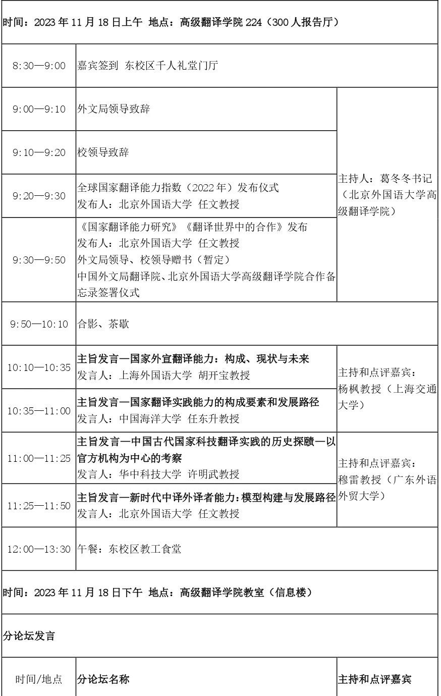 北京外国语大学计划于2023年11月18—19日举办2023年第三届“国家翻译能力: 理论建构与实践探索”学术研讨会暨全球国家翻译能力指数、国家翻译能力研究新书发布仪式,同时首发《国家翻译能力研究》专著(商务印书馆,2023)、《翻译世界中的合作》(外语教学与研究出版社,2023)。期望通过多维度、多领域、多主体、跨学科的深度探讨,产出和共享更多研究成果。