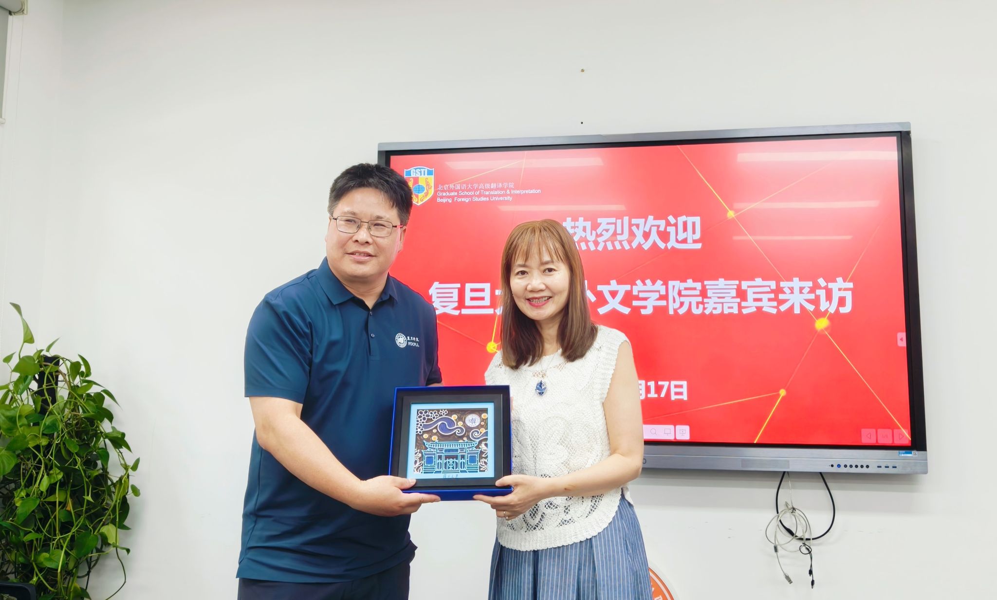 2025 年 6 月 17 日上午,复旦大学外国语言文学学院到访我院,双方就翻译专业博士(DTI)和复合型翻译人才培养以及思政工作等展开深入交流。
