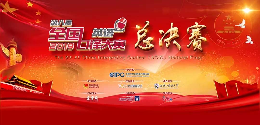 2019年10月18日-10月19日,第八届全国口译大赛(英语)总决赛在北京外国语大学举办,比赛分为交传赛(晋级赛、精英赛)和同传邀请赛。